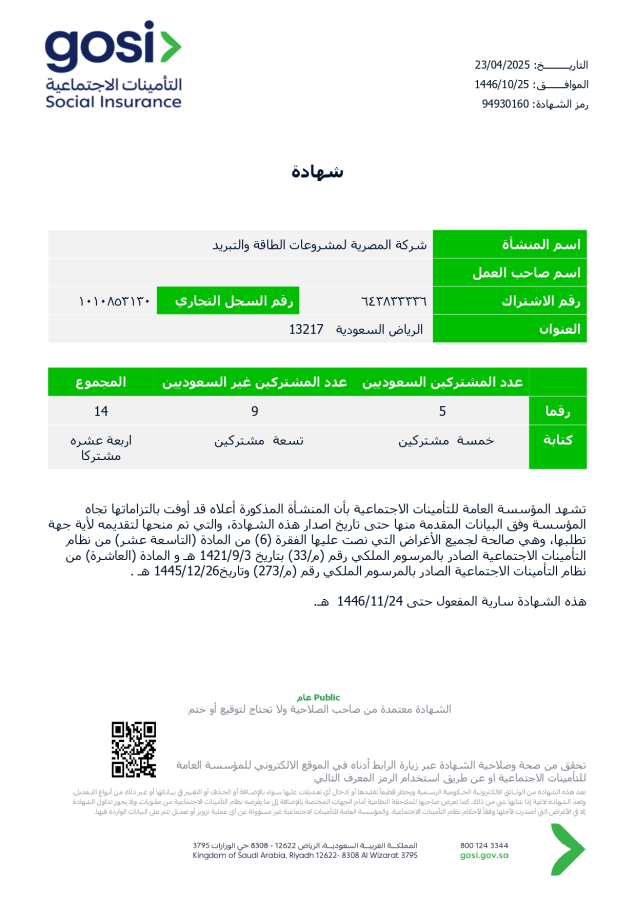 شعادة الإنتساب للهيئة السعودية للمقاولين