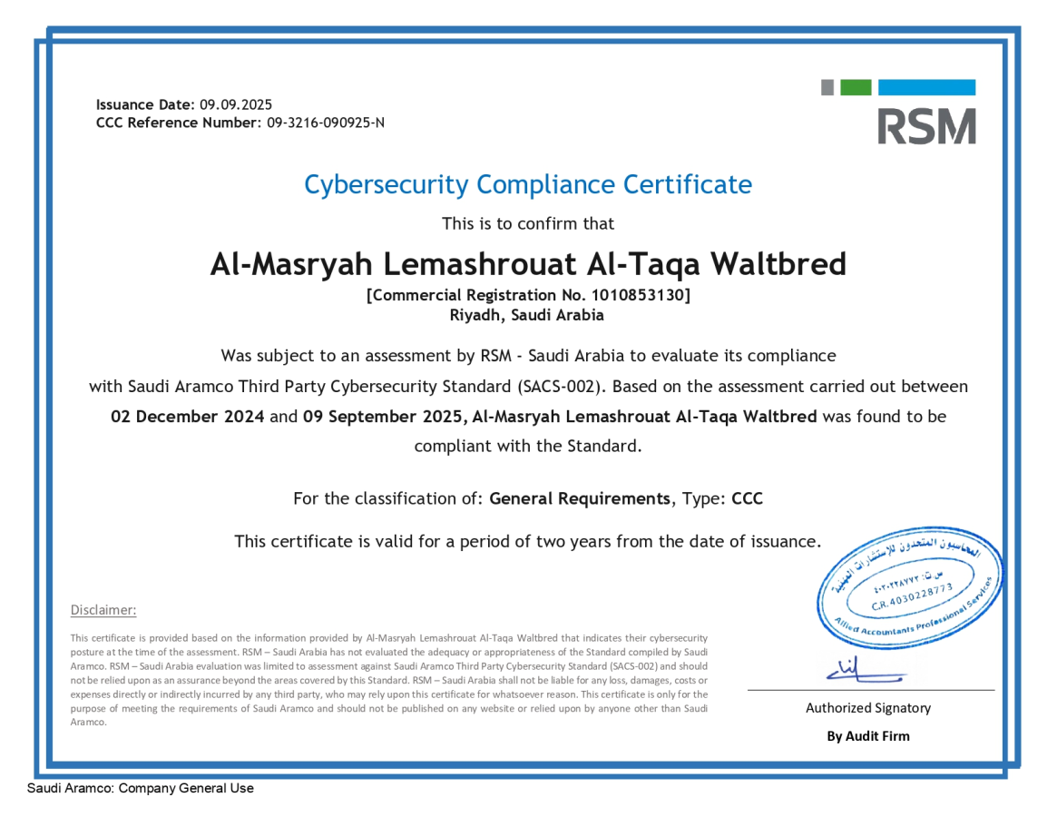 شهادة تقدير - شركة عجيبة للبترول